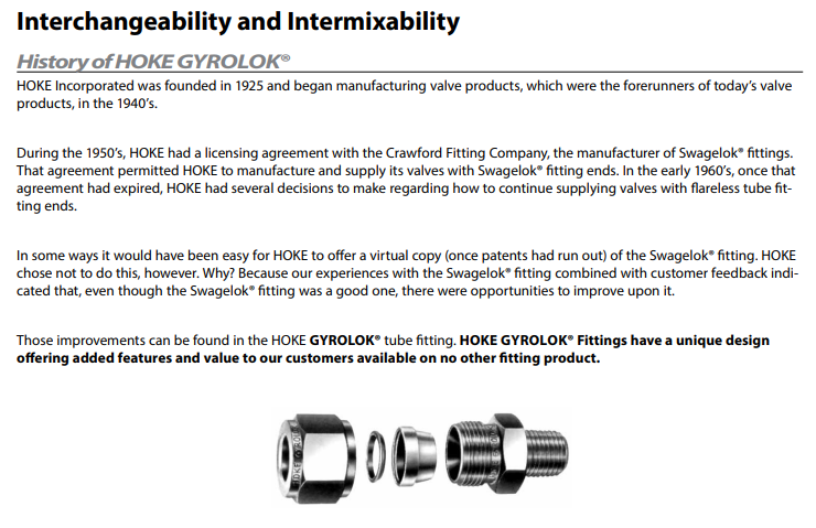 เอกสารและหลักฐานที่ทำให้มั่นใจ HOKE Gyrolok ใช้ ร่วมกับ หรือ ทดแทน Swagelok ได้แน่นอน